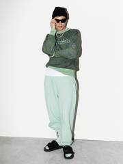 MODEL WEARS Goods By Goodhood Beanie, Sun Buddies Greta Sunglasses, Aries Reverse Problemo Green Space Dye Knit, Aries Credit Card SS Tee, Goods by Goodhood Curb Chain, Maple Laugh Now Cry Later Chain, Aries Premium Temple Sweatpant, Aries Truth & Justice Space Dye Sock, Suicoke MOTO-VS