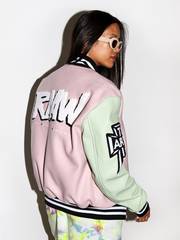 MODEL WEARS Sun Buddies Courtney Sunglasses, Aries Varsity Jacket, Aries Twisted Vest Dress, Aries No Problemo Crew Sock, New Balance 991