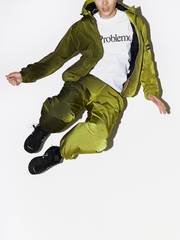 MODEL WEARS Aries Embroidered Mini No Problemo Beanie, Aries Spruzzo Windcheater Jacket, Aries No Problemo Shortsleeve T-Shirt, Goods by Goodhood Curb Chain, Aries Spruzzo Windcheater Pant, New Balance 990