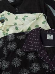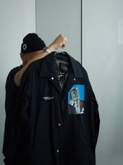 Sasquatchfabrix shirt alongside a Tourne de Transmission bomber and a vintage shirt, artwork by Johnny Brophy, Undercover lab coat from Japan.