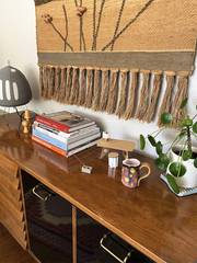 PC: Our home is quite eclectic, so we tend to stick to a mostly neutral palette, dark woods and black accents to tie things together. We have some mid-century pieces that we bought when we started creating a shared home space together, the clean Iines have stood the test of time and allows us to mix other elements in with them. Our backyard cabin that we built is more of a paired-down space - just simple plywood and good light make it great for focussed conversations or decompressing.