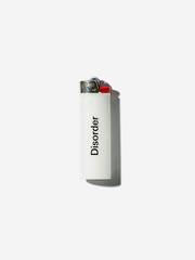 Part of an exclusive collaboration between Peter Saville and Goodhood, this white lighter features black 'Disorder' text on the side.