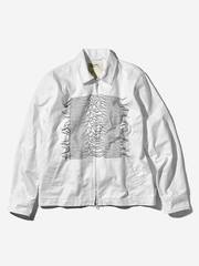 A collaboration with Universal Works, this organic cotton jacket features the Unknown Pleasures cover art stitched on the front with frayed detailing, two front pockets and adjustable buttoned cuffs.