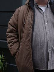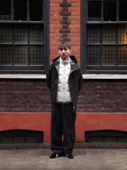 LOUIS: I am wearing Goldwin 0, Thisisneverthat and AFFXWRKS - I love layering padded jackets under a waterproof outer shell. I haven’t worn a wide baggy bottom for a while but loved the colour and texture of the AFFXWRKS trousers.