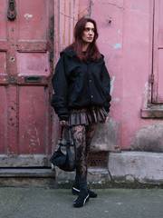 LAUREN: I wanted to create a balance between femininity and effortless vibe by pairing the Puma Speedcats with an oversized jacket from the menswear section. The jacket adds a touch of androgyny, contrasting beautifully with the ultra-feminine elements of the outfit, such as the dress’s ruffles and the sexy lace tights, creating a look that feels unexpected.