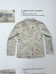 In Rin Tanaka's My Freedamn! 5 (Cycleman Books, 2006), graduation memorial jackets are highlighted as significant cultural artefacts that embody the spirit and style of American youth culture, particularly from the mid-20th century. These jackets, would be drawn on or embroidered by classmates, adorned with school names, graduation years, and personalised details like nicknames. They'd serve as cherished keepsakes that commemorate the pivotal moment of graduating from school or university. They capture the essence of their era, reflecting the values, aesthetics, and personal stories of a bygone generation, a legacy within a tangible object.